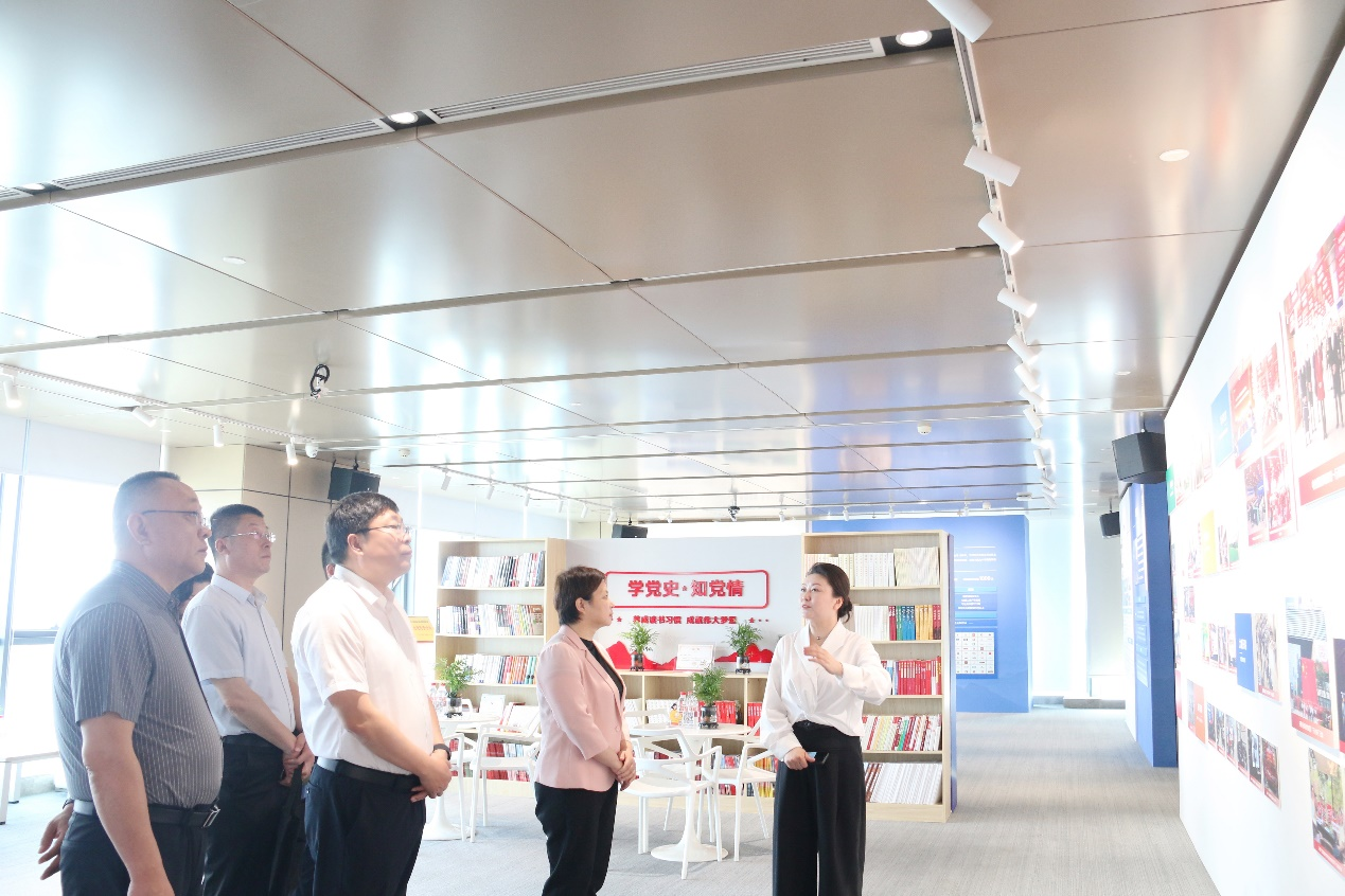 调研团一行参观了蓝润集团红色驿站。蓝润集团党委书记罗云燕介绍了企业历程、产业发展,以及在特色党建、社会责任等方面工作。